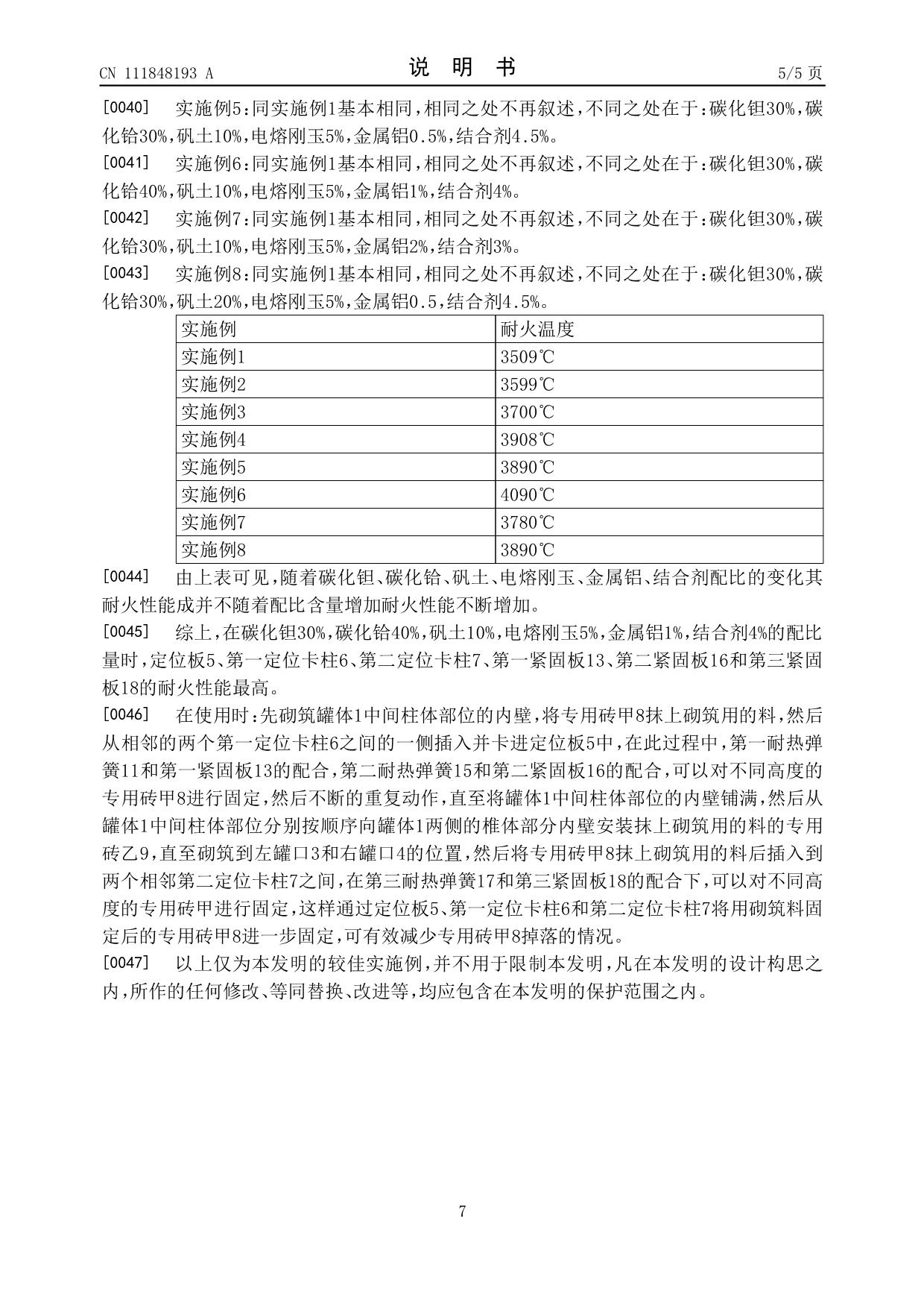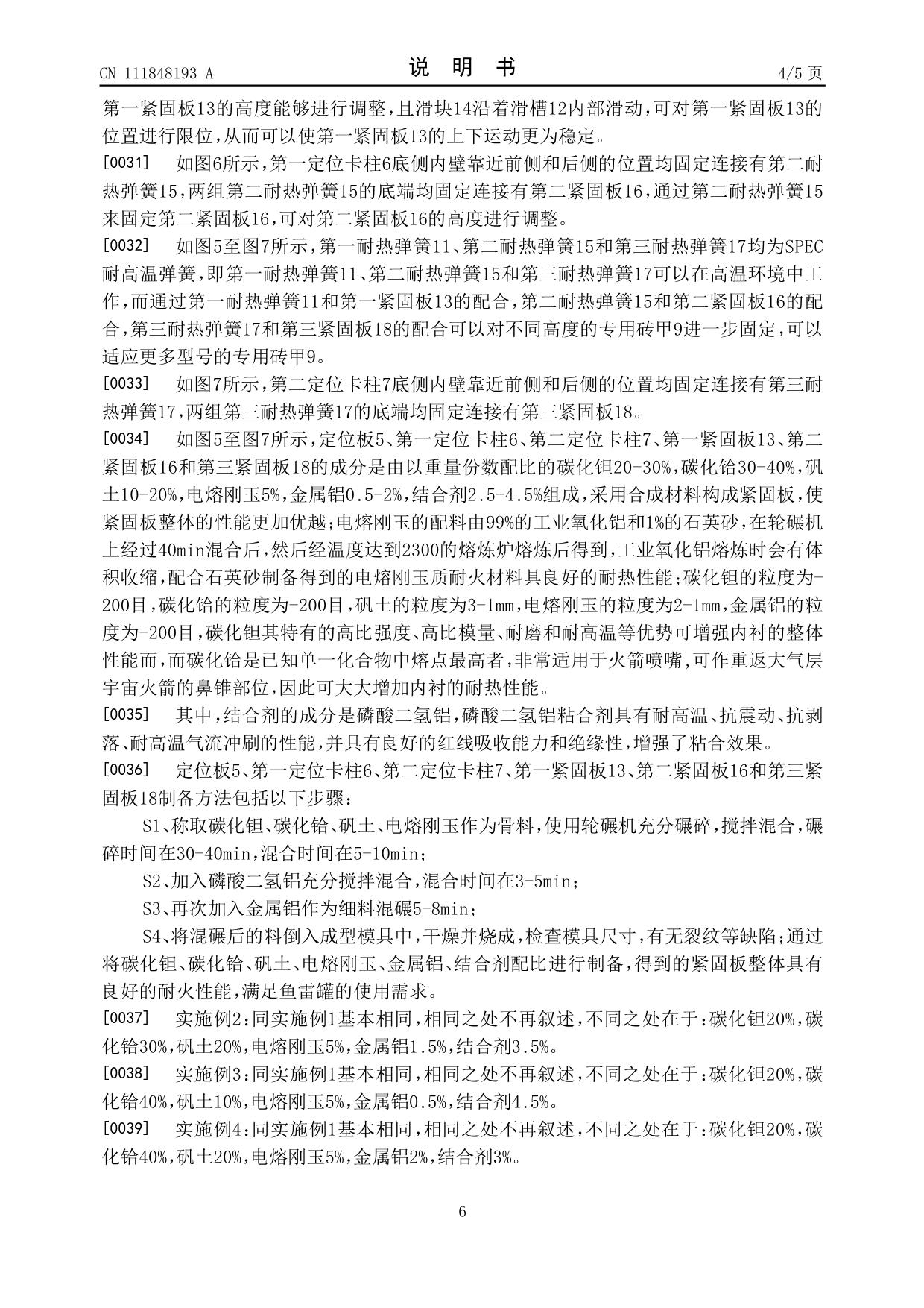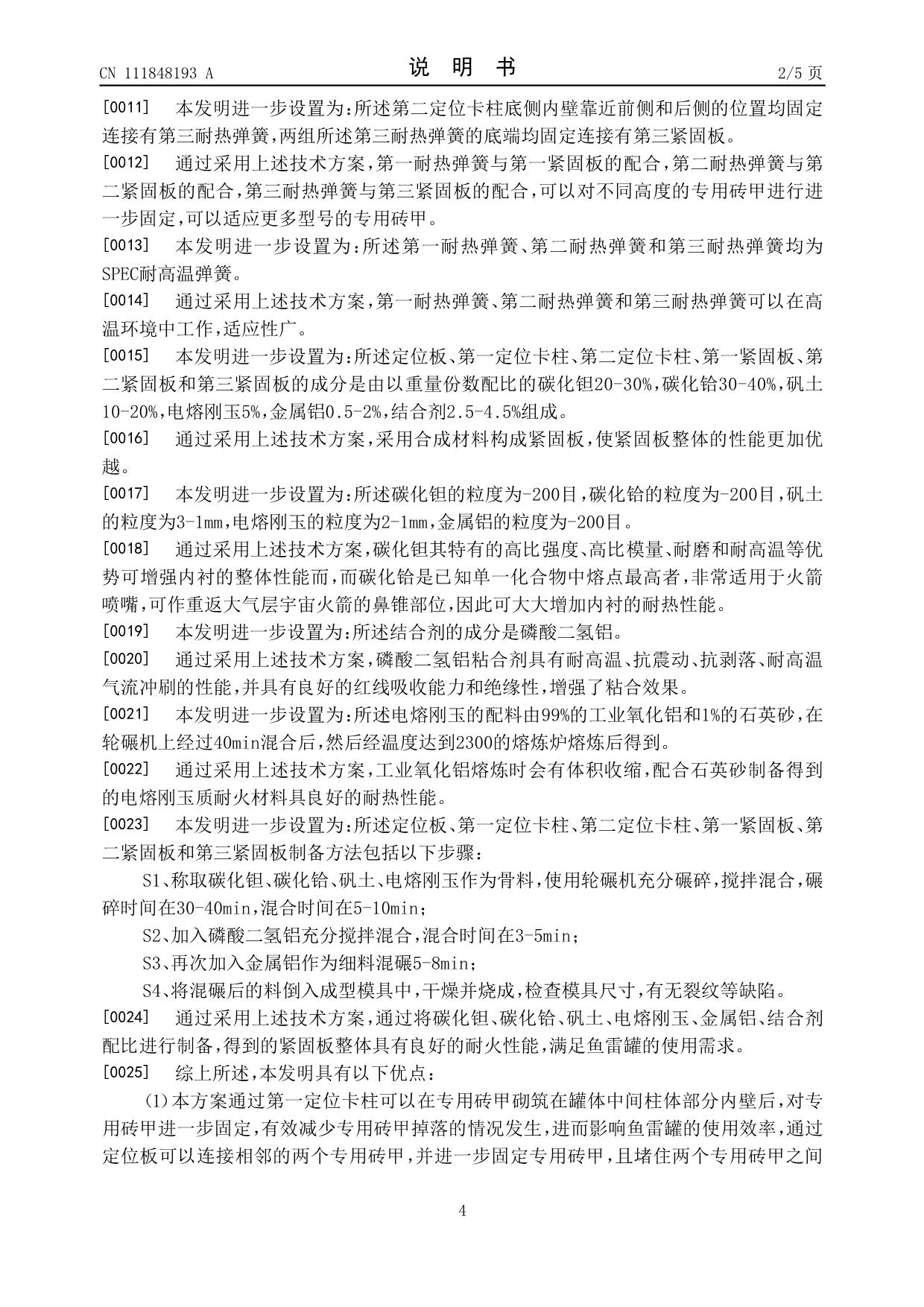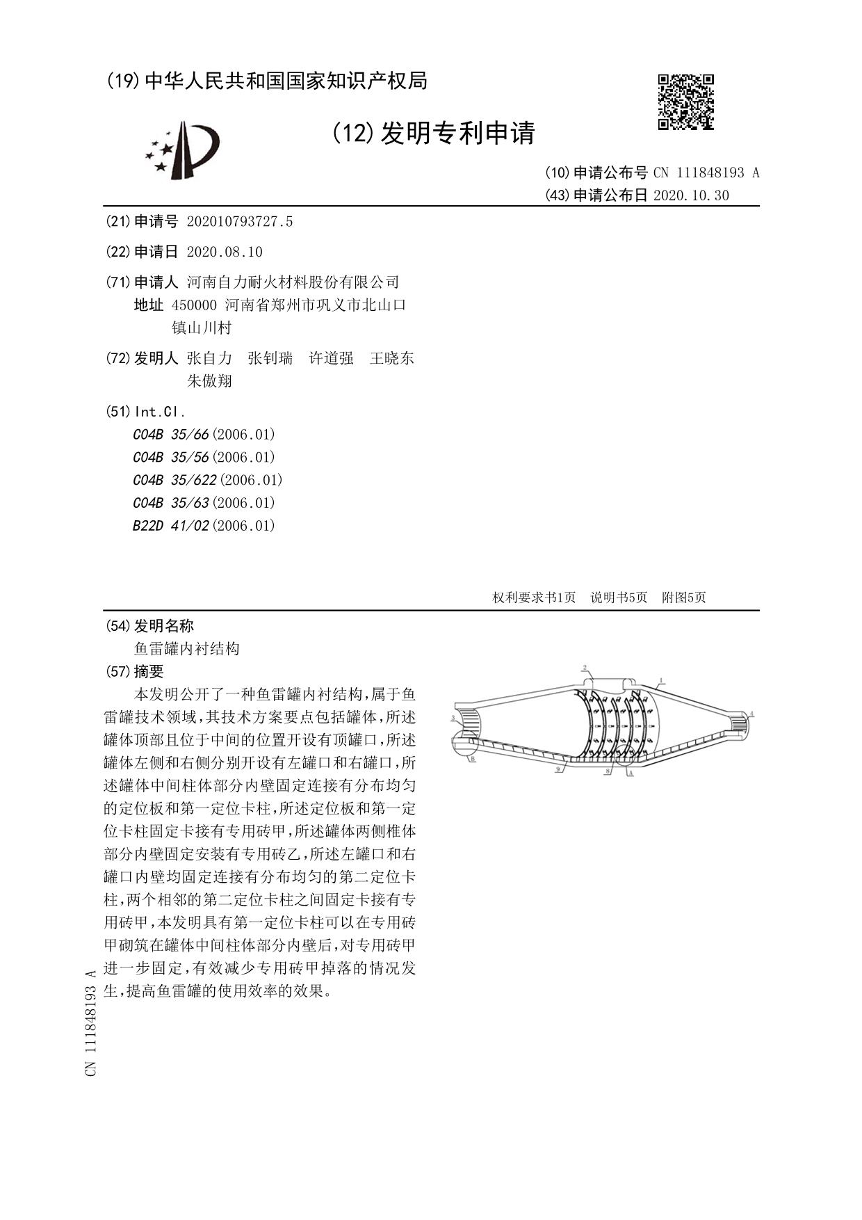 發(fā)明專利——魚雷罐內(nèi)襯結(jié)構(gòu)